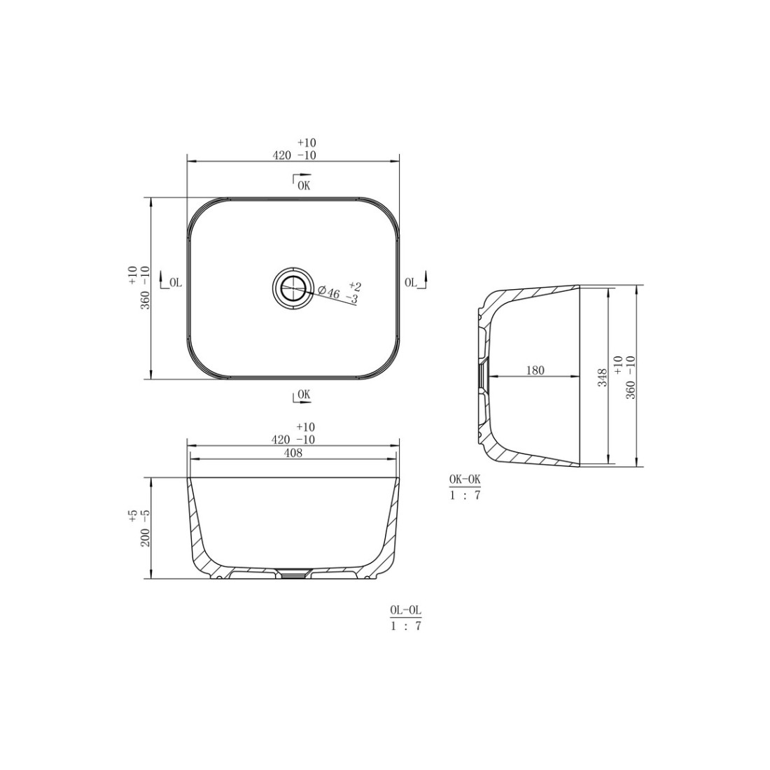 Horus Deep 420mm Washbowl in white measuring 420 x 360 mm.