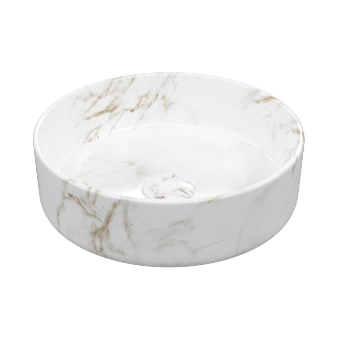 Luxo 355mm Ceramic Round Washbowl & Waste - Marble Effect