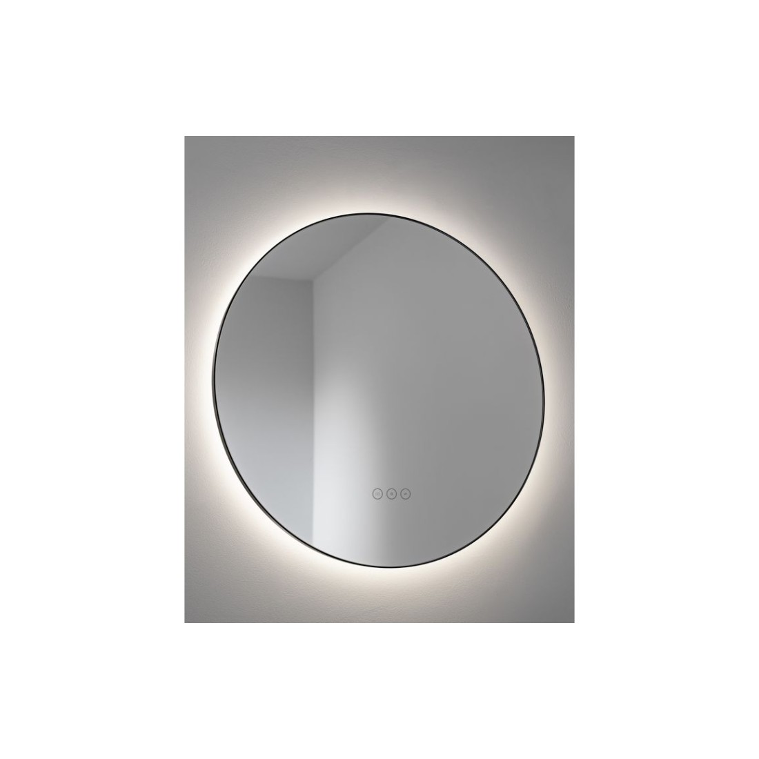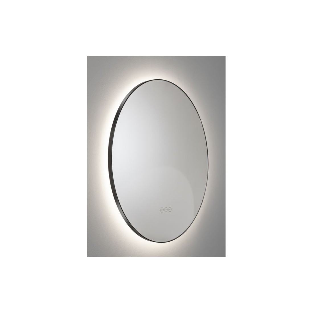 Abode Mayar 600mm Round LED Mirror - Matt Black is a round back-lit mirror.