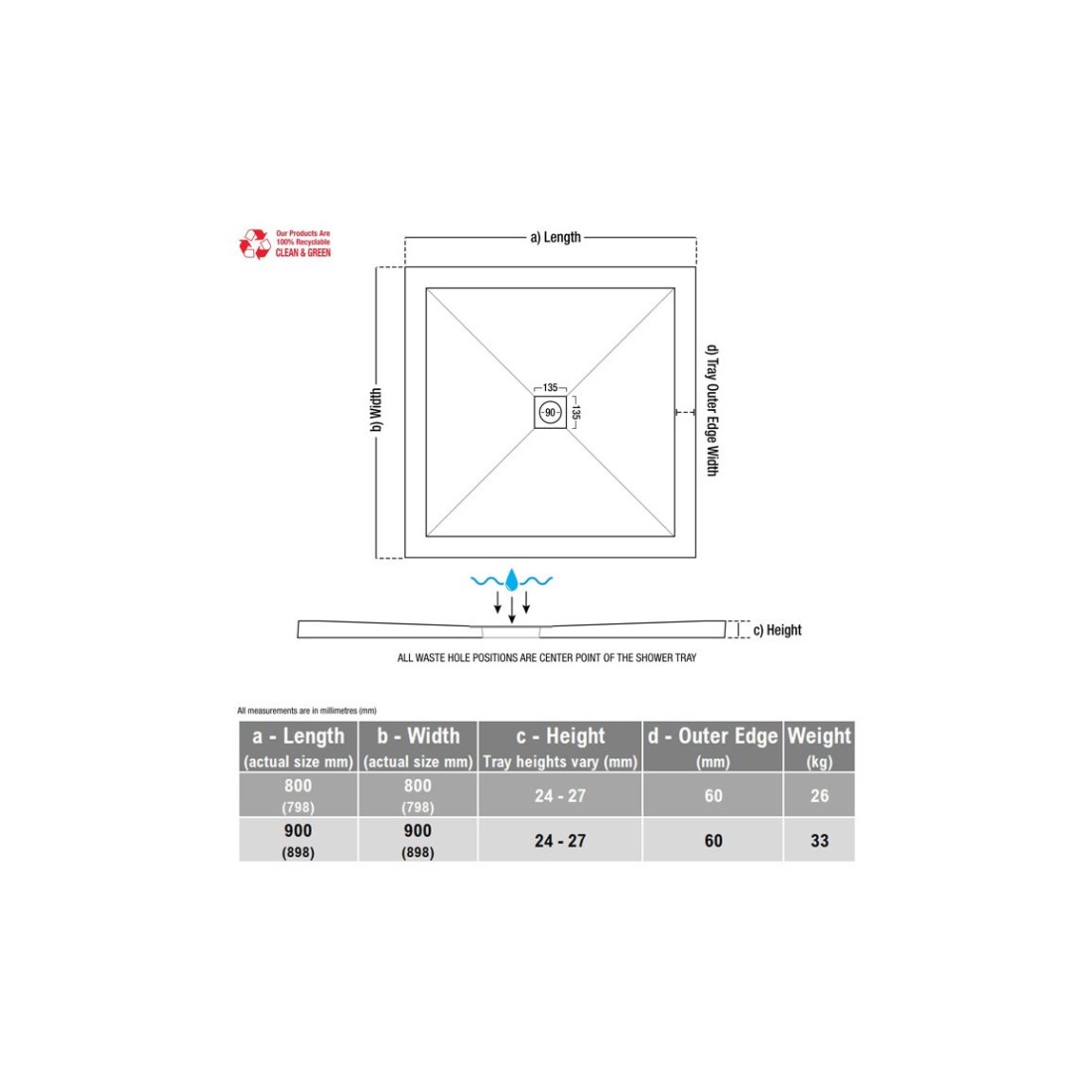 Out-of-Stock Shower Trays 45mm Low Profile 800x800mm Square Tray & Waste - White Aquamarine CKBA104318 £178.00 45mm Low Profile 800x800mm Square Tray & Waste - White. View