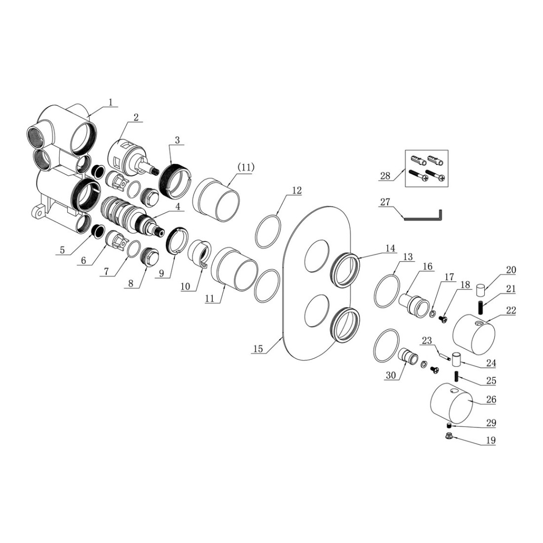 - This product is a replacement for DICM0280 Circa Thermostatic Two Outlet Twin Shower Valve which is now discontinued