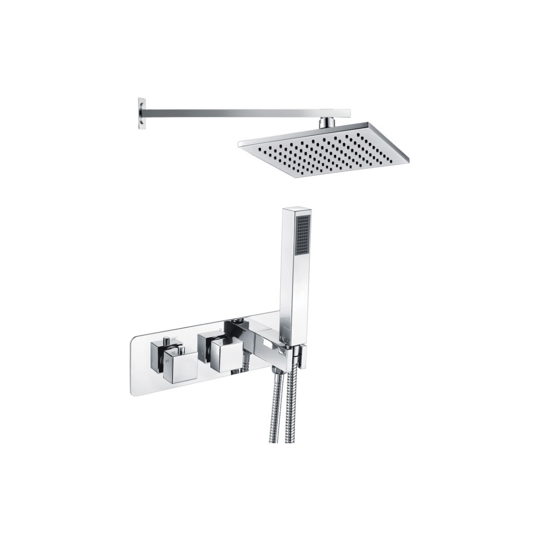 Neptune Shower Pack One - Two Outlet Twin Shower Valve w/Handset & ABS Overhead - Chrome.