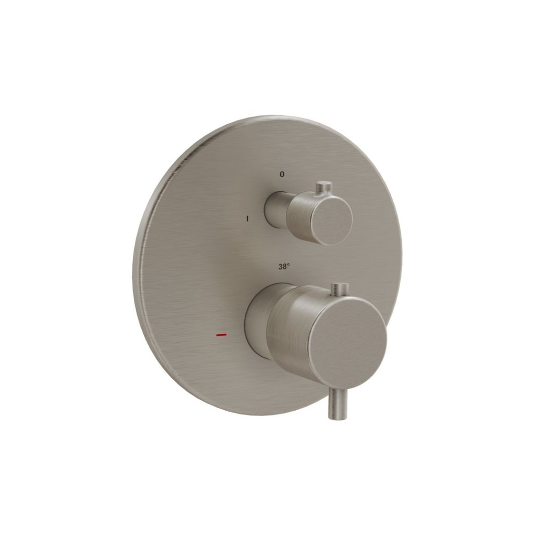 VitrA Root Round Integrated Thermostatic Bath/Shower Mixer Valve - Brushed Nickel.