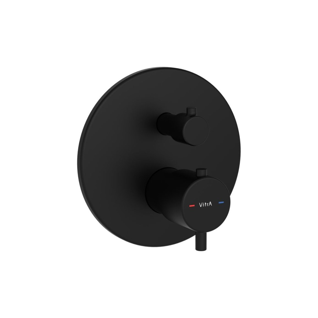 VitrA Root Round Integrated Thermostatic Bath/Shower Mixer Valve - Matt Black.