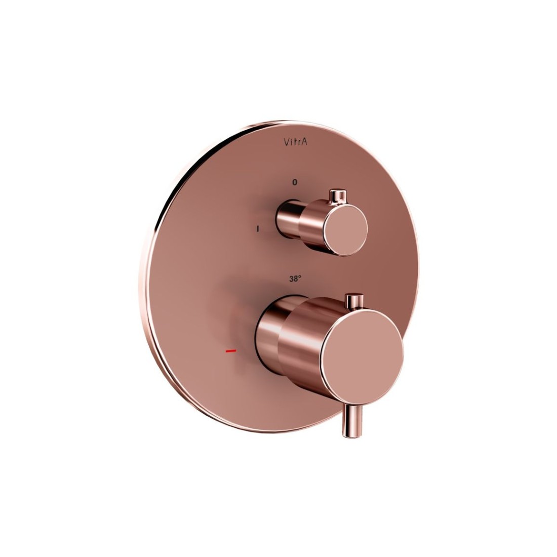 VitrA Root Round Integrated Thermostatic Bath/Shower Mixer Valve - Soft Copper