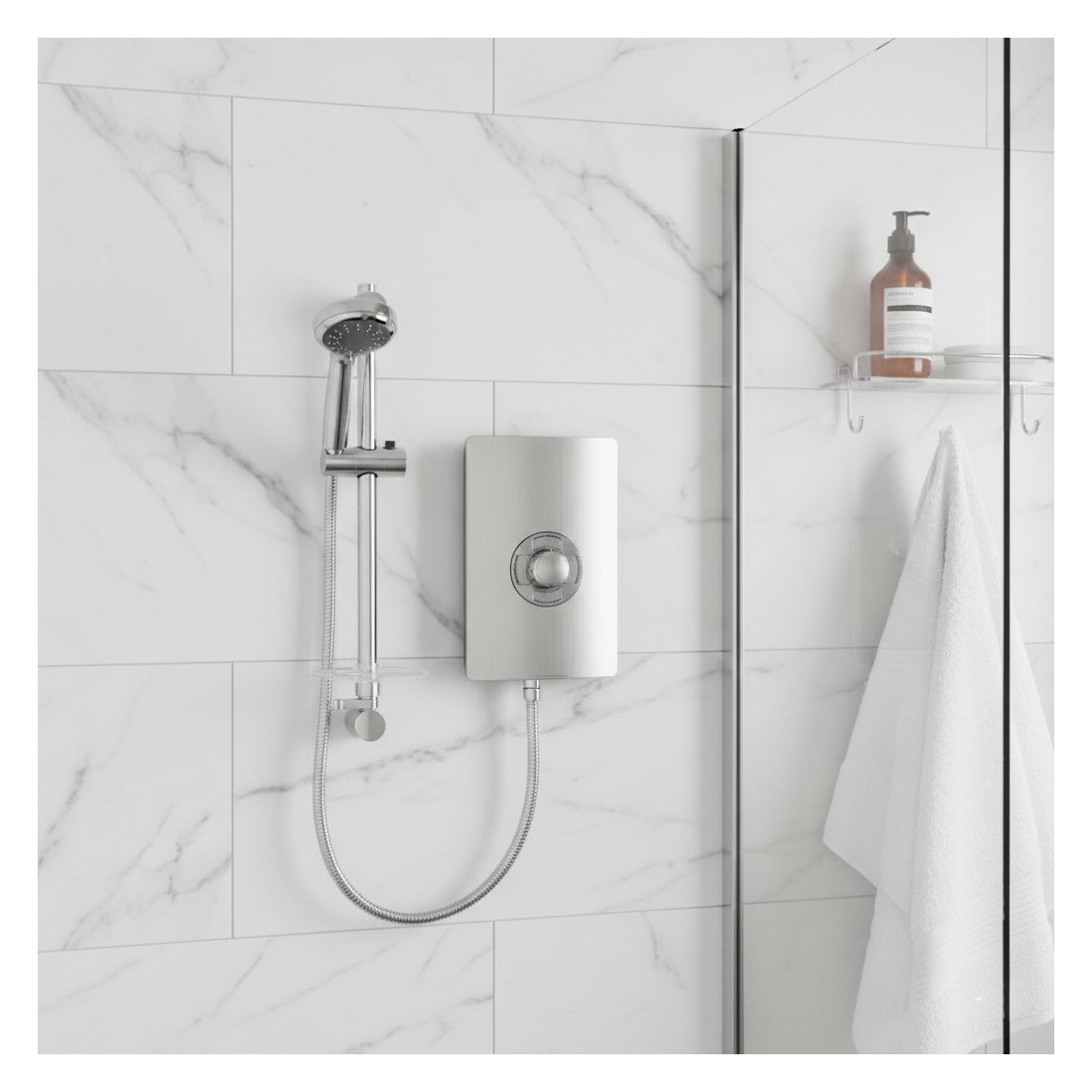 Triton Aspirante 9.5kW Contemporary Electric Shower - Brushed Steel.