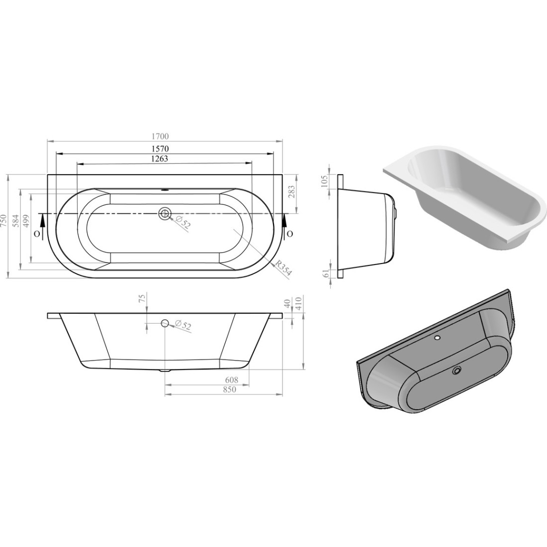 - This product is a replacement for DIBR0006C Decadence SUPERCAST Double End Back To Wall 1700x800x545mm 0TH Bath which is now discontinued