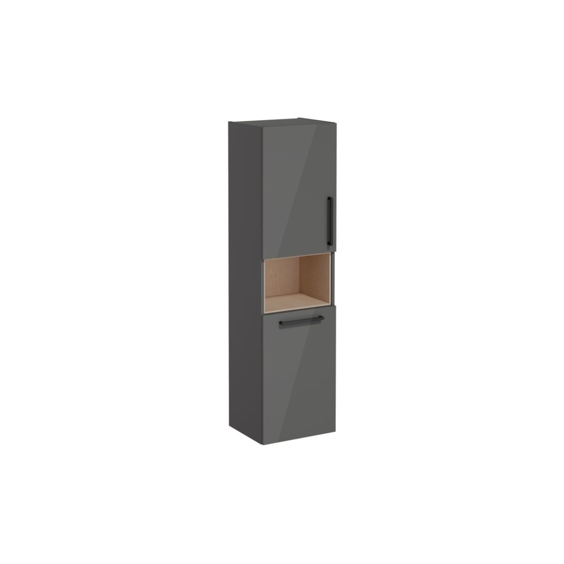 VitrA Root Flat 40cm 2 Door Semi-Tall Unit w/Laundry Basket (LH Hinge) - Anthracite High Gloss measuring 420.0 x 360 x 1550.0 mm.