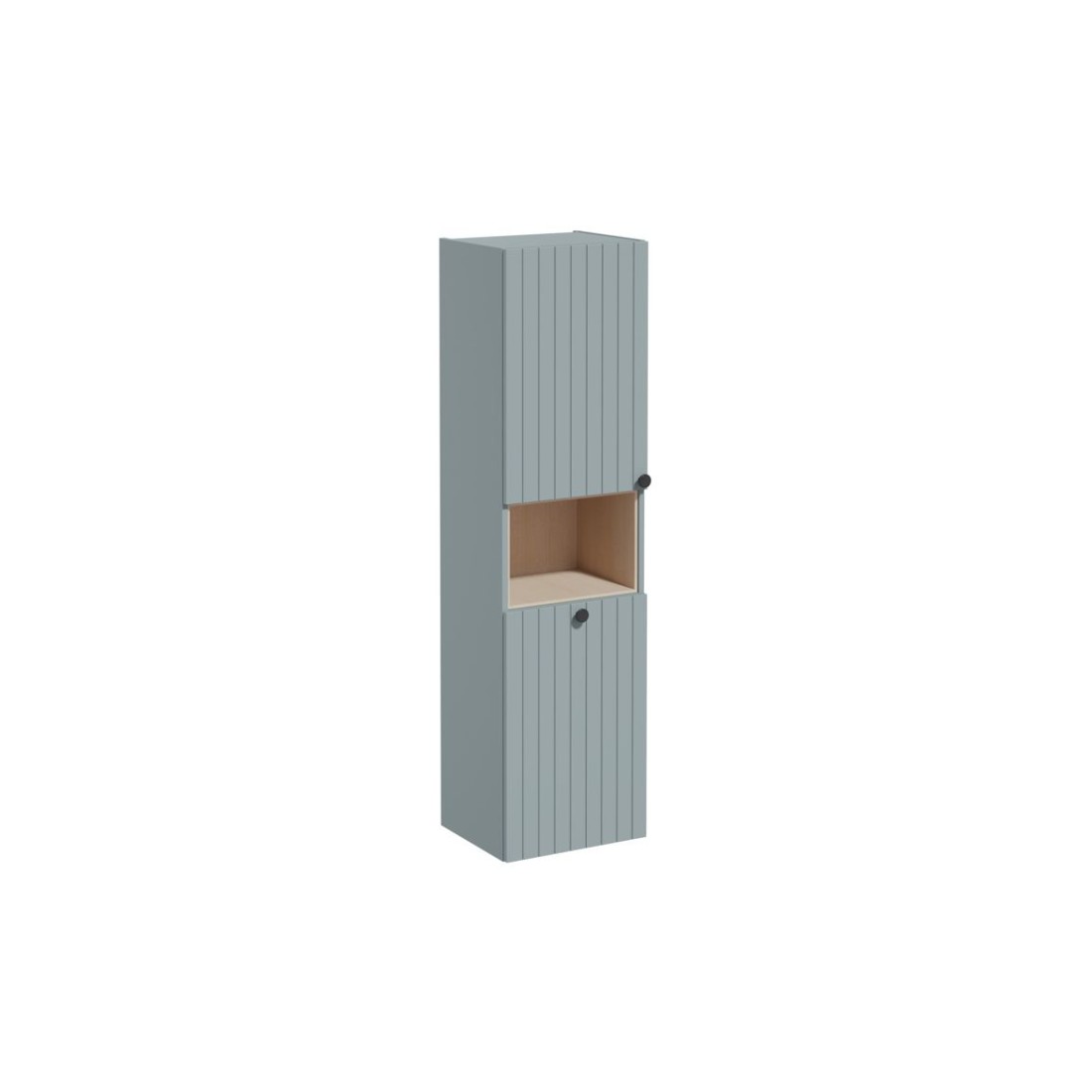 VitrA Root Groove 40cm 2 Door Semi-Tall Unit w/Laundry Basket (LH Hinge) - Matt Fjord Green measuring 420.0 x 360 x 1550.0 mm.