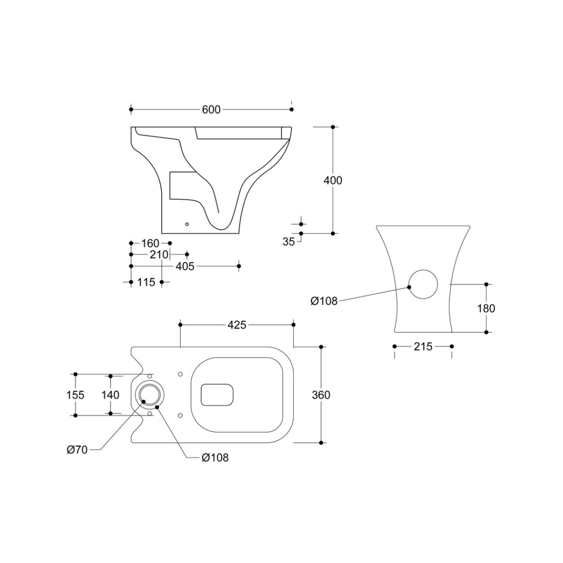 - Distance from soil pipe spigot to wall: 155mm