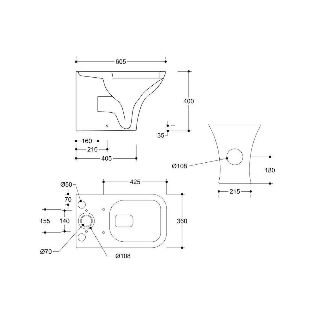 - Distance from soil pipe spigot to wall: 164mm