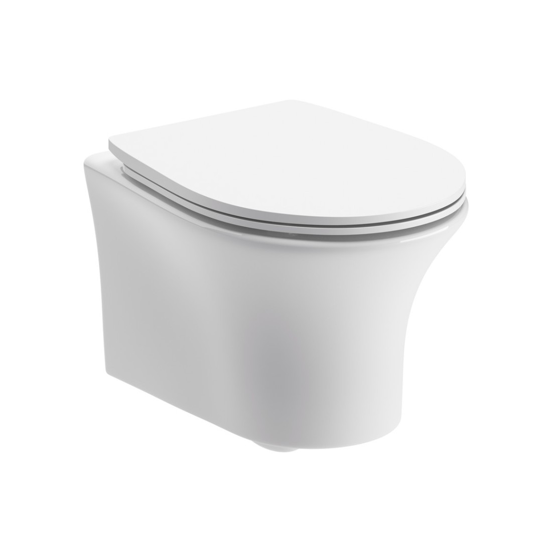 Seville Rimless Wall Hung WC & Soft Close Seat in white measuring 365 x 520 x 360 mm.