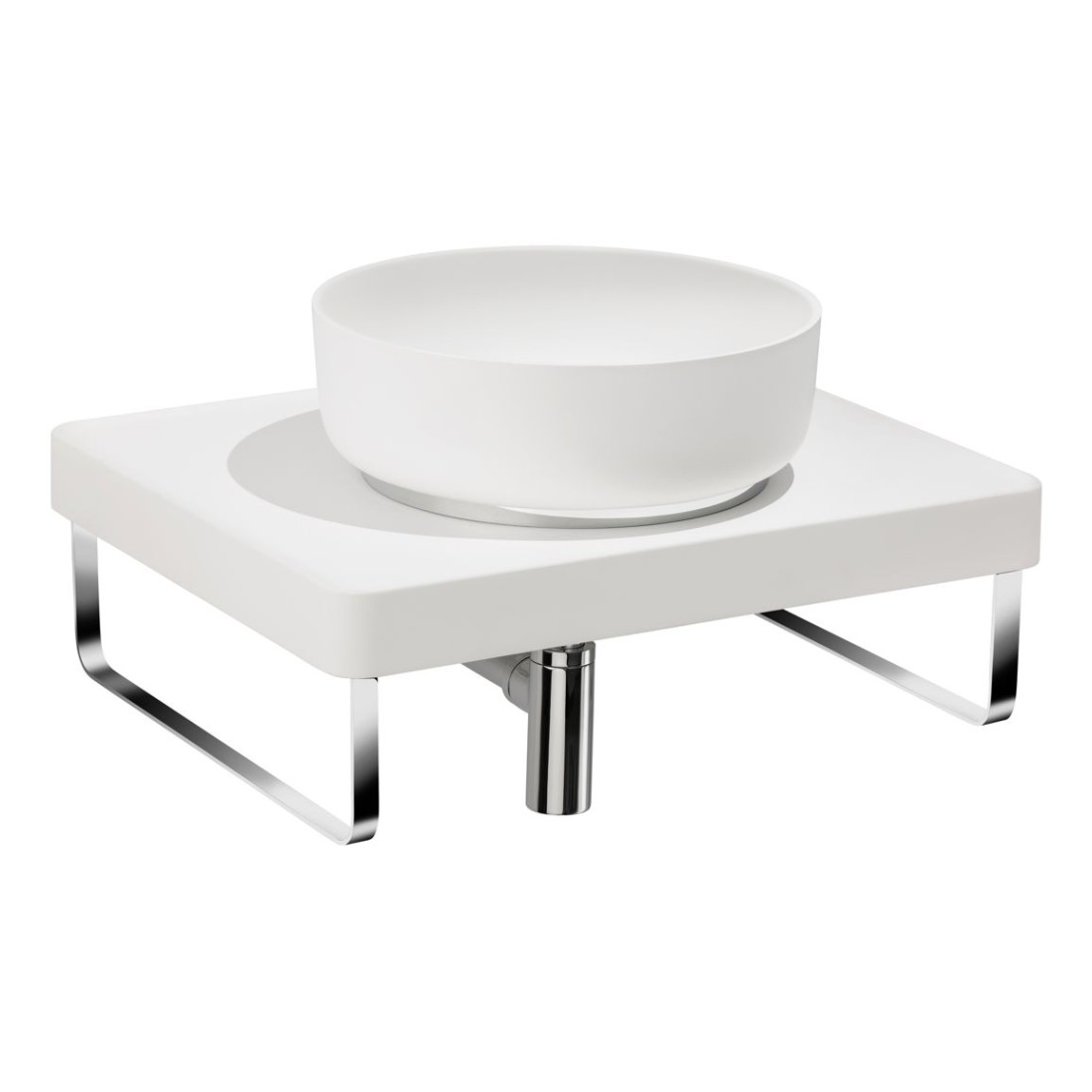 Abode Tableau/Cava Shelf & Round Basin Set - Chalk White w/Chrome Finishes in chalk white & chrome measuring 600.0 x 500 x 380.0 mm.