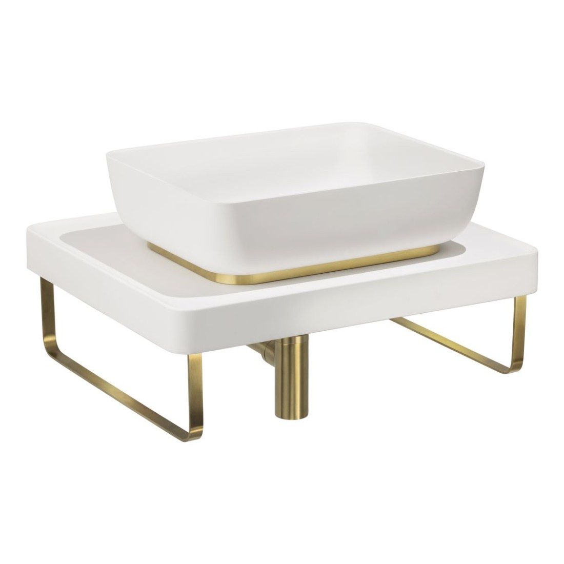 Abode Tableau/Cava Shelf & Tablet Basin Set - Chalk White w/Brushed Brass Finishes in chalk white & brushed brass measuring 600.0 x 500 x 380.0 mm.