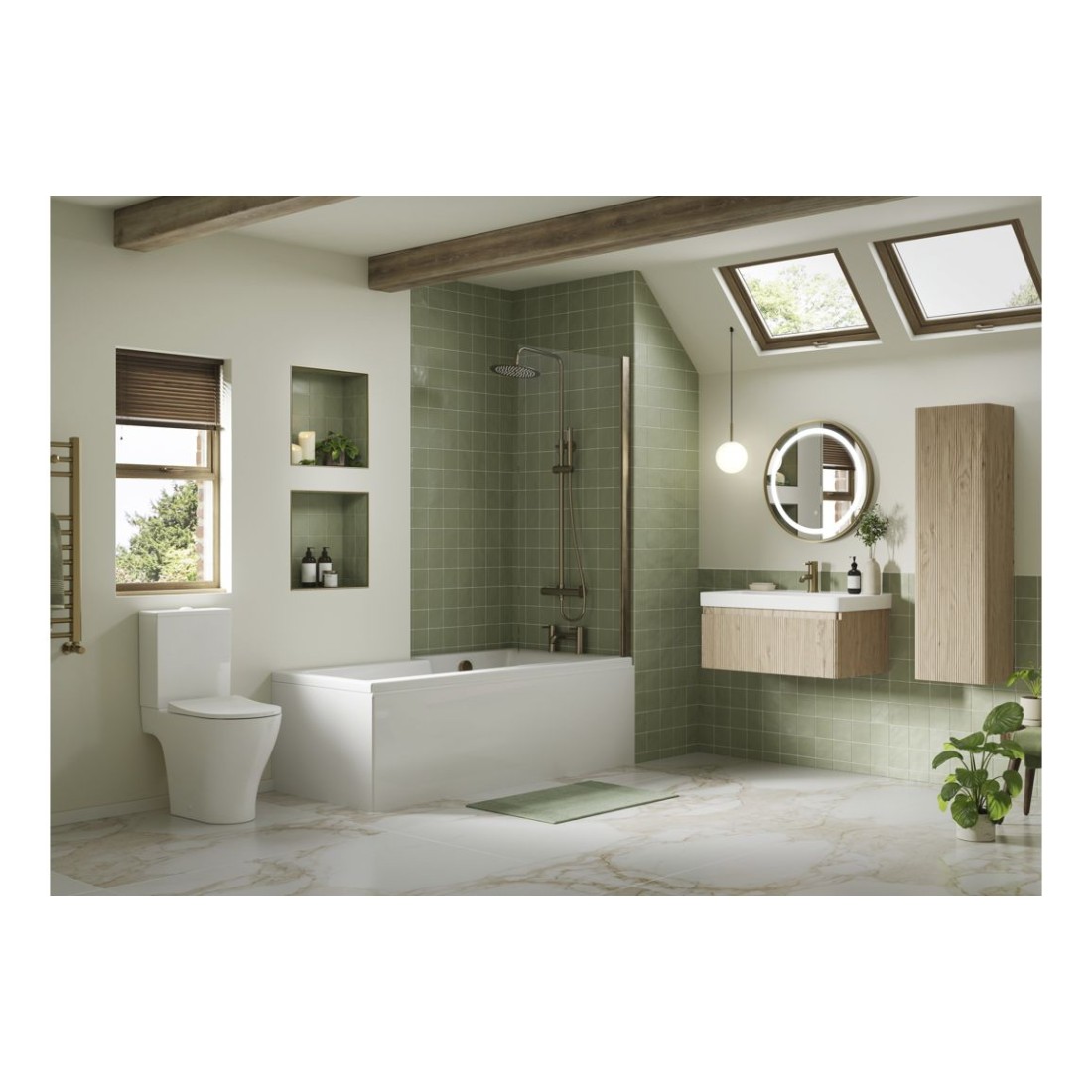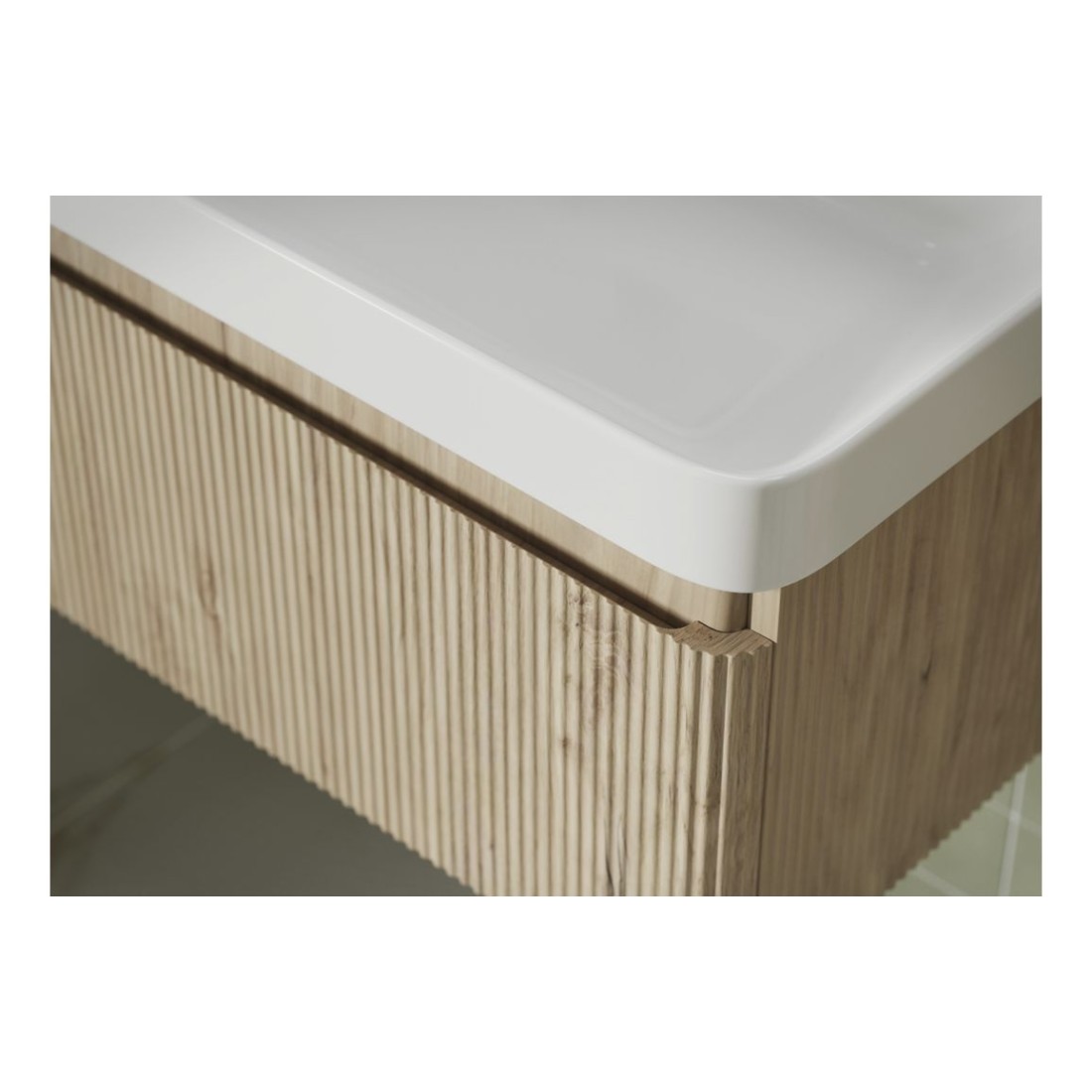 - Soft curves and a wood textured finish gives the Kuba collection a natural softer feel to your bathroom.