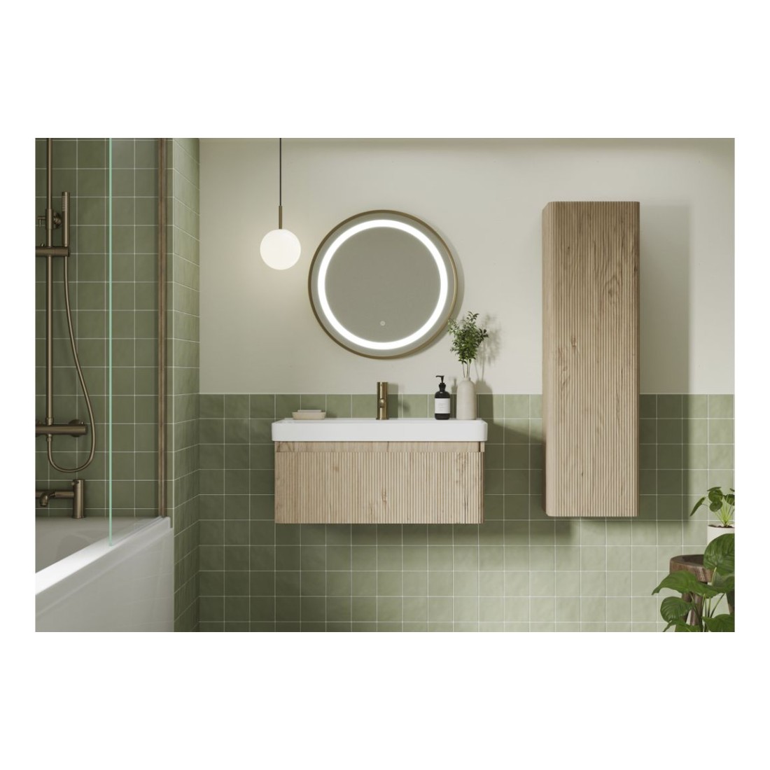 - Soft curves and a wood textured finish gives the Kuba collection a natural softer feel to your bathroom.