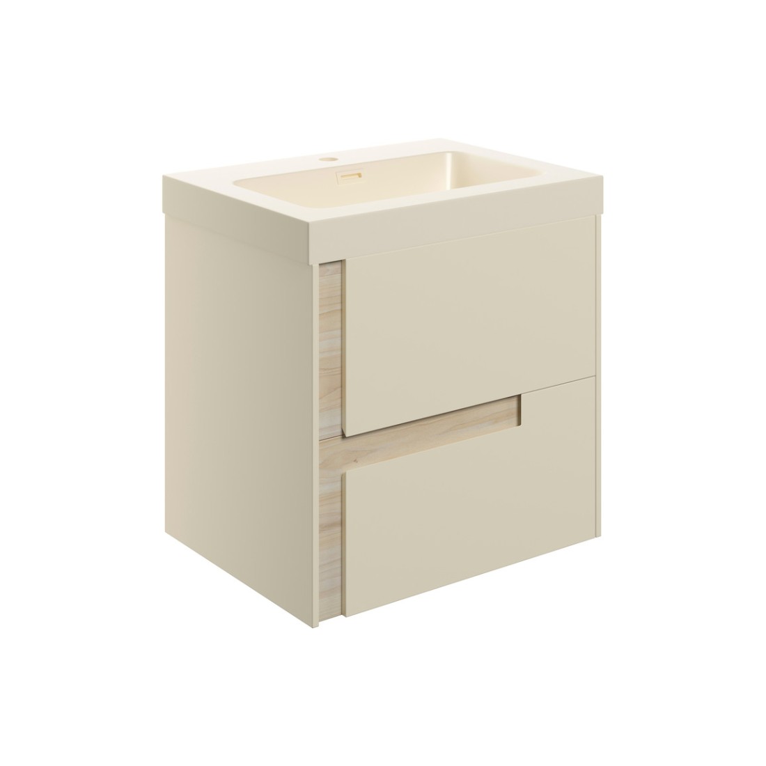 Coimbra 605mm Wall Hung 2 Drawer Basin Unit & 1TH Co-ordinating Basin - Matt Cotton & Oak Effect measuring 605.0 x 460 x 610.0 mm.
