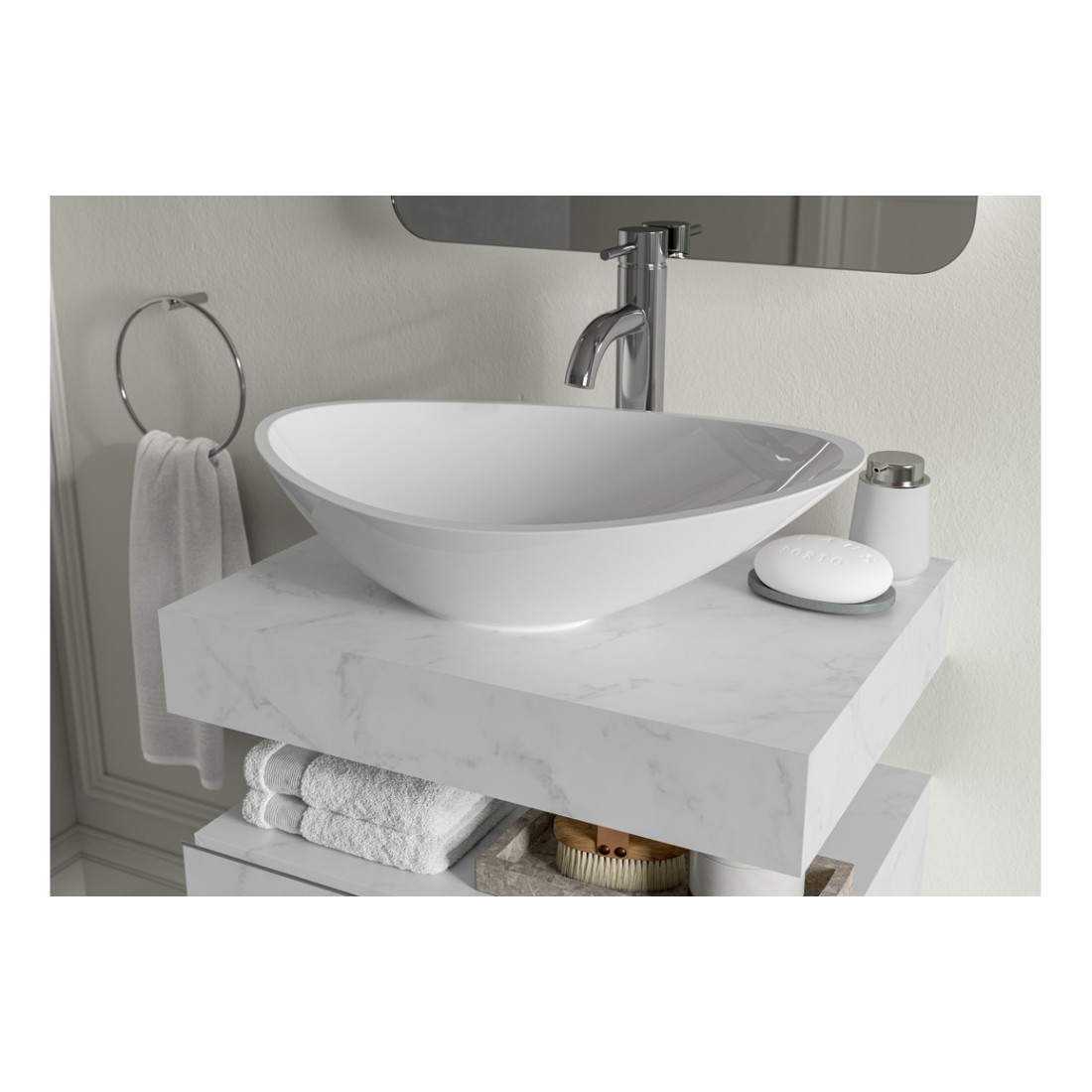 Nazare 800mm Wall Hung White Marble Basin Shelf & Brushed Brass Bottle Trap