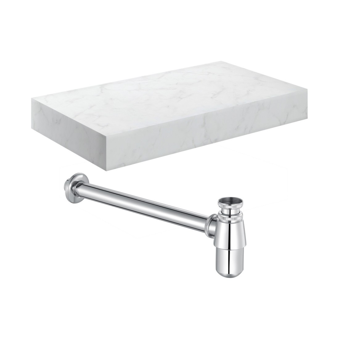 Nazare 800mm Wall Hung White Marble Basin Shelf & Chrome Bottle Trap