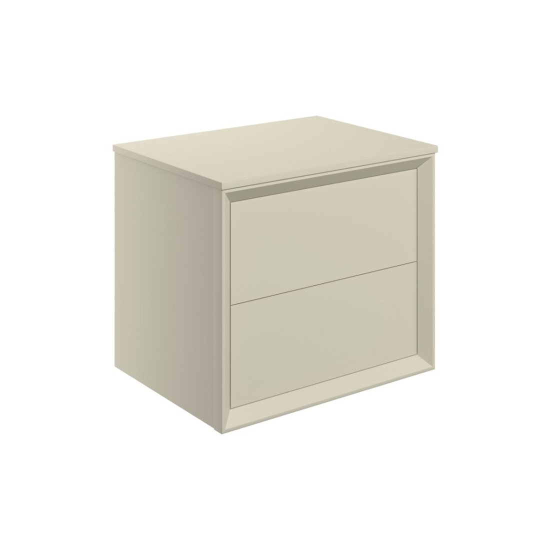 Porto 610mm Wall Hung 2 Drawer Basin Unit & Top - Matt Cotton measuring 610.0 x 460 x 513.0 mm.