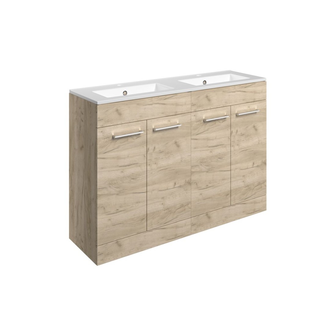 Valbom 1210mm Floor Standing 4 Door Basin Unit & 2TH Thin Edge Basin - Oak measuring 1210.0 x 460 x 848.0 mm.