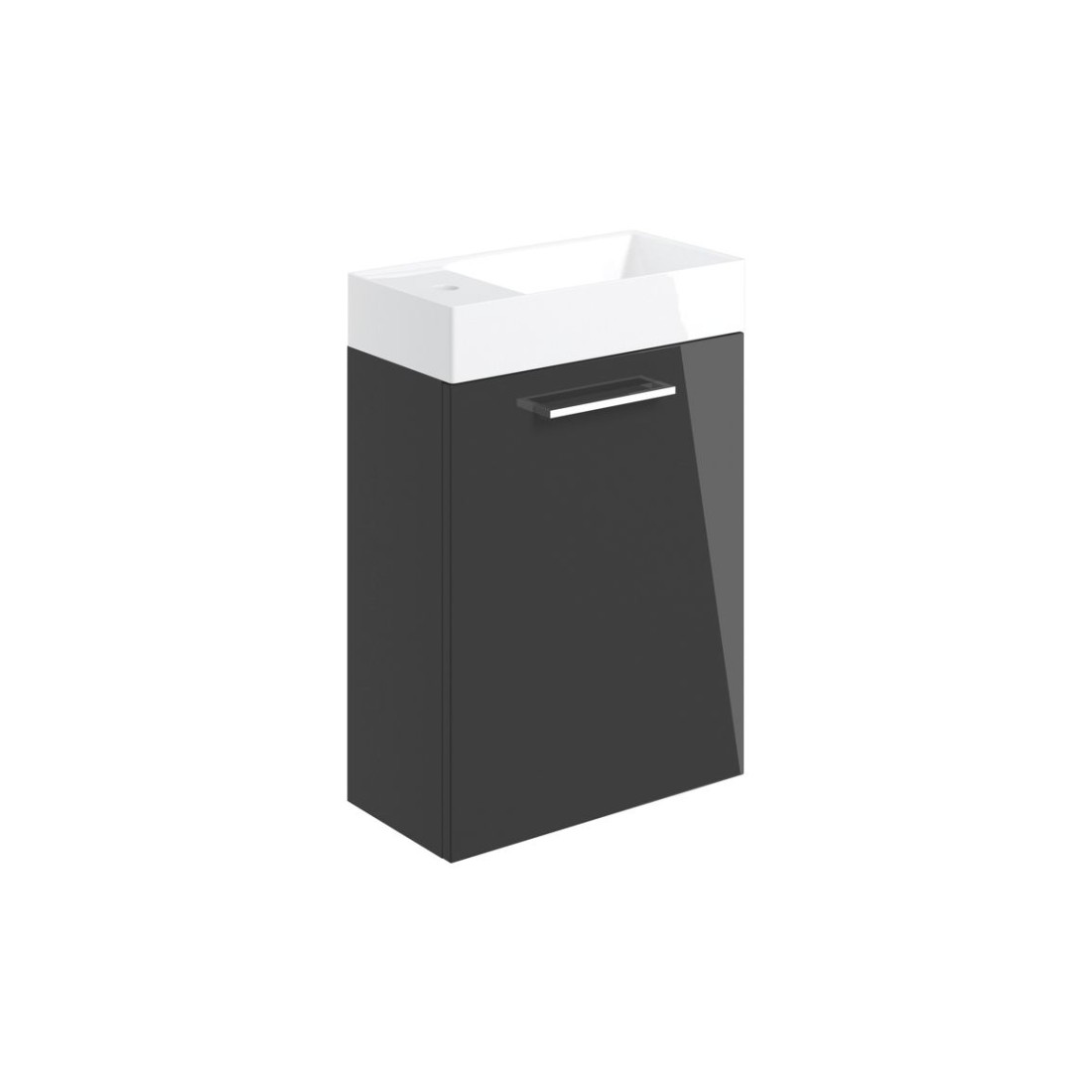 Valbom 410mm Wall Hung 1 Door Basin Unit & 1TH Basin - Anthracite Gloss