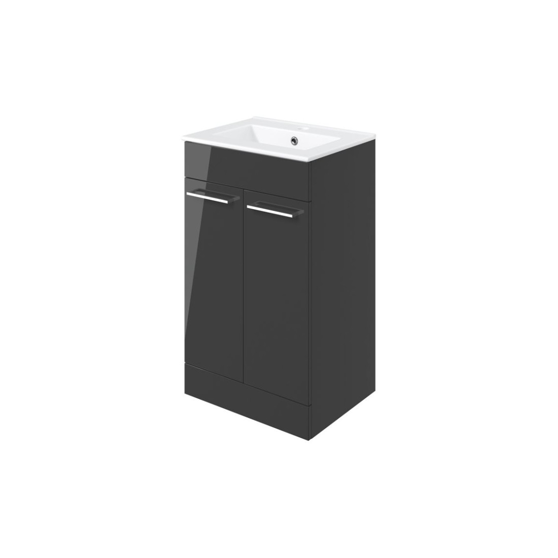 Valbom 510mm Floor Standing 2 Door Basin Unit & 1TH Thin Edge Basin - Anthracite Gloss