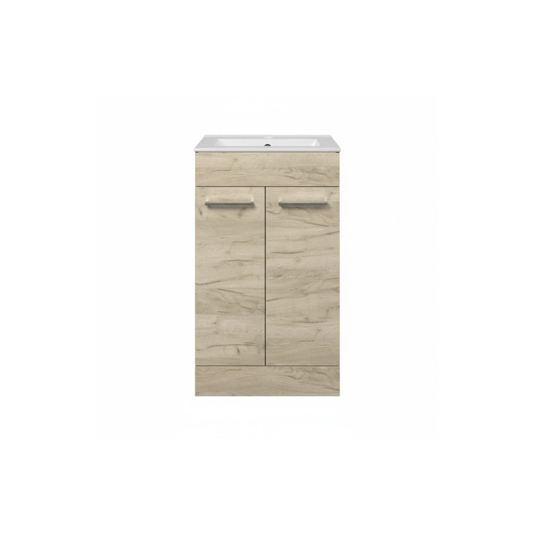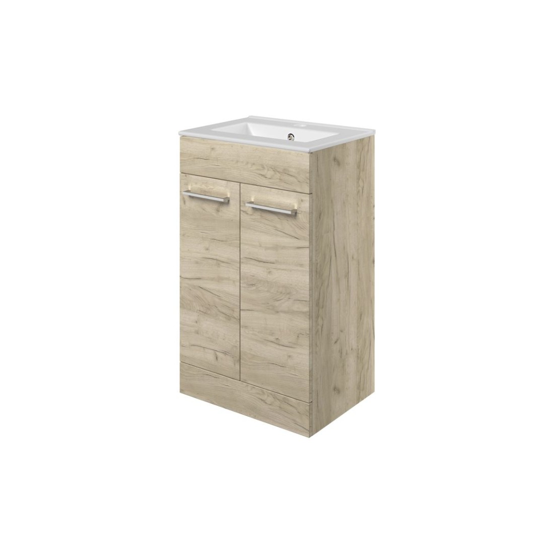 Valbom 510mm Floor Standing 2 Door Basin Unit & 1TH Thin Edge Basin - Oak