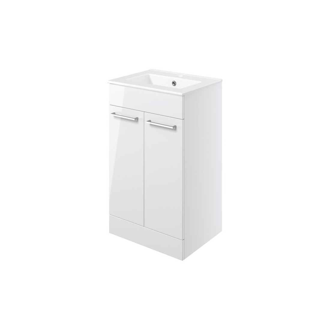 Valbom 510mm Floor Standing 2 Door Basin Unit & 1TH Thin Edge Basin - White Gloss