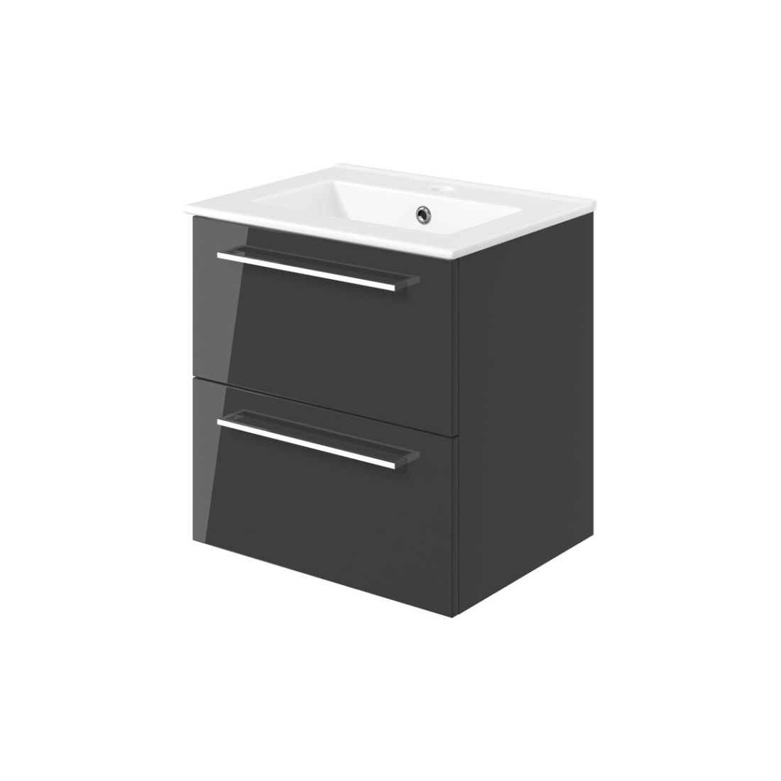 Valbom 510mm Wall Hung 2 Drawer Basin Unit & 1TH Thin Edge Basin - Anthracite Gloss