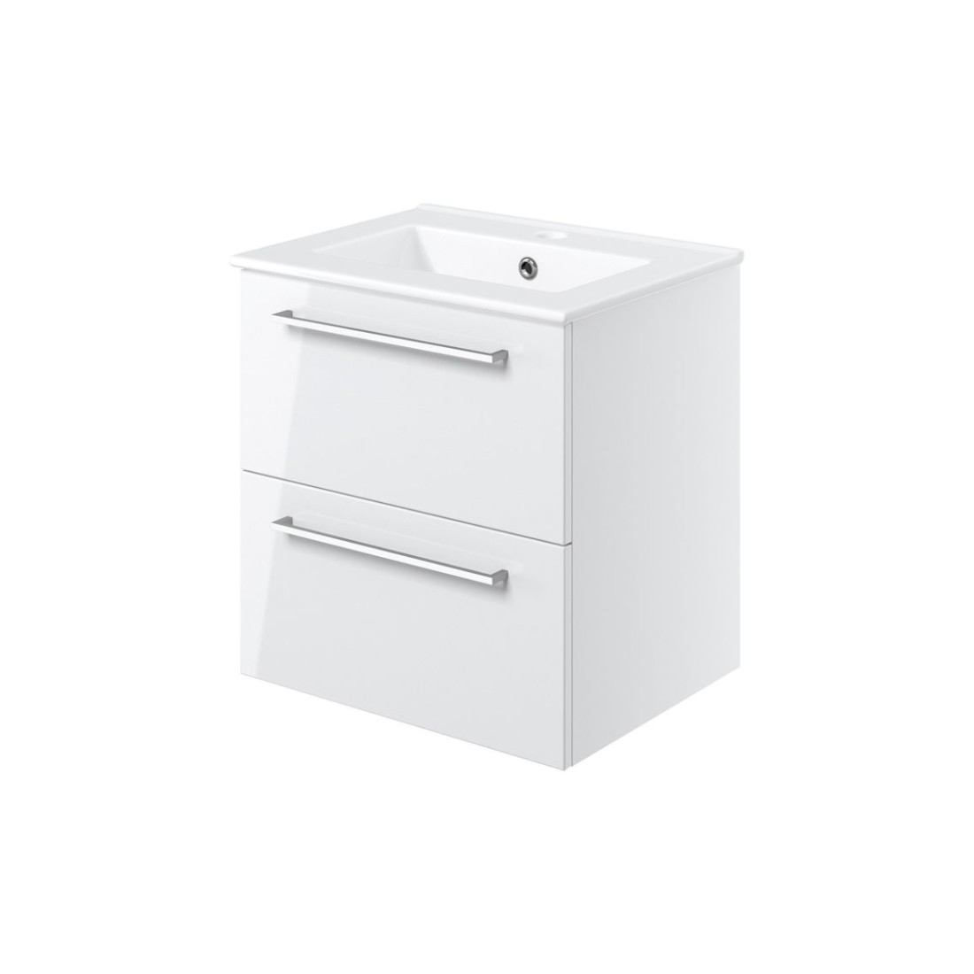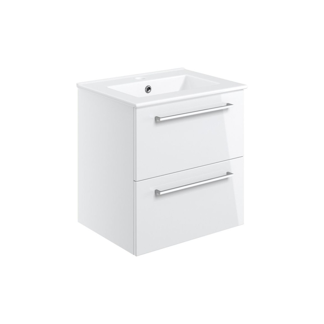 Valbom 510mm Wall Hung 2 Drawer Basin Unit & 1TH Thin Edge Basin - White Gloss