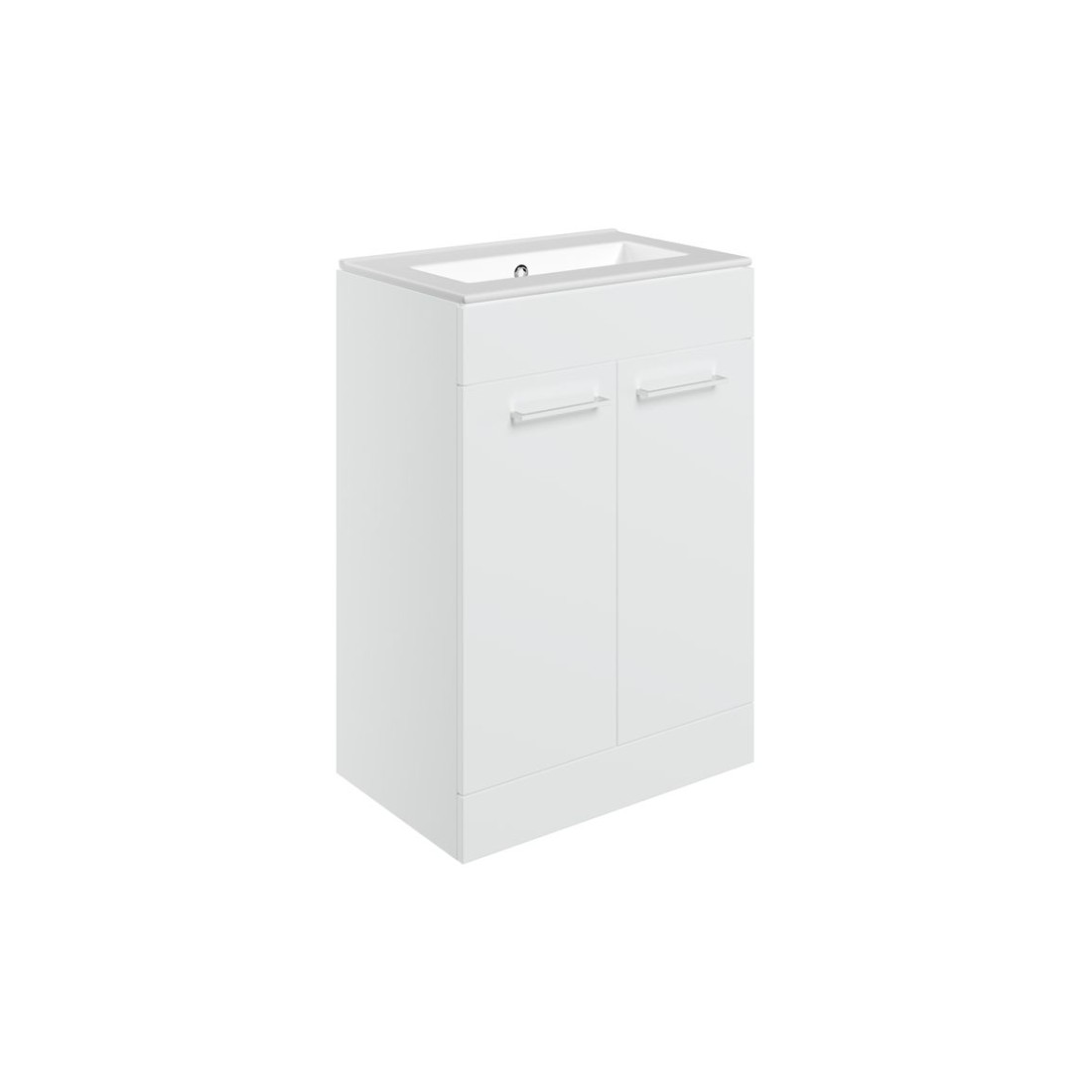 Valbom 610mm Floor Standing 2 Door Basin Unit & 0TH Thin Edge Basin - White Gloss measuring 610.0 x 460 x 848.0 mm.