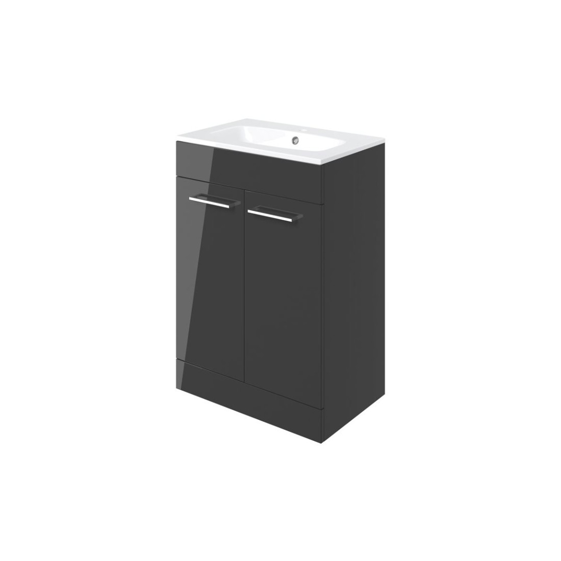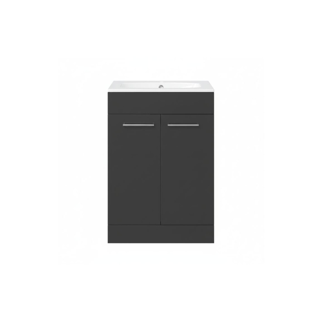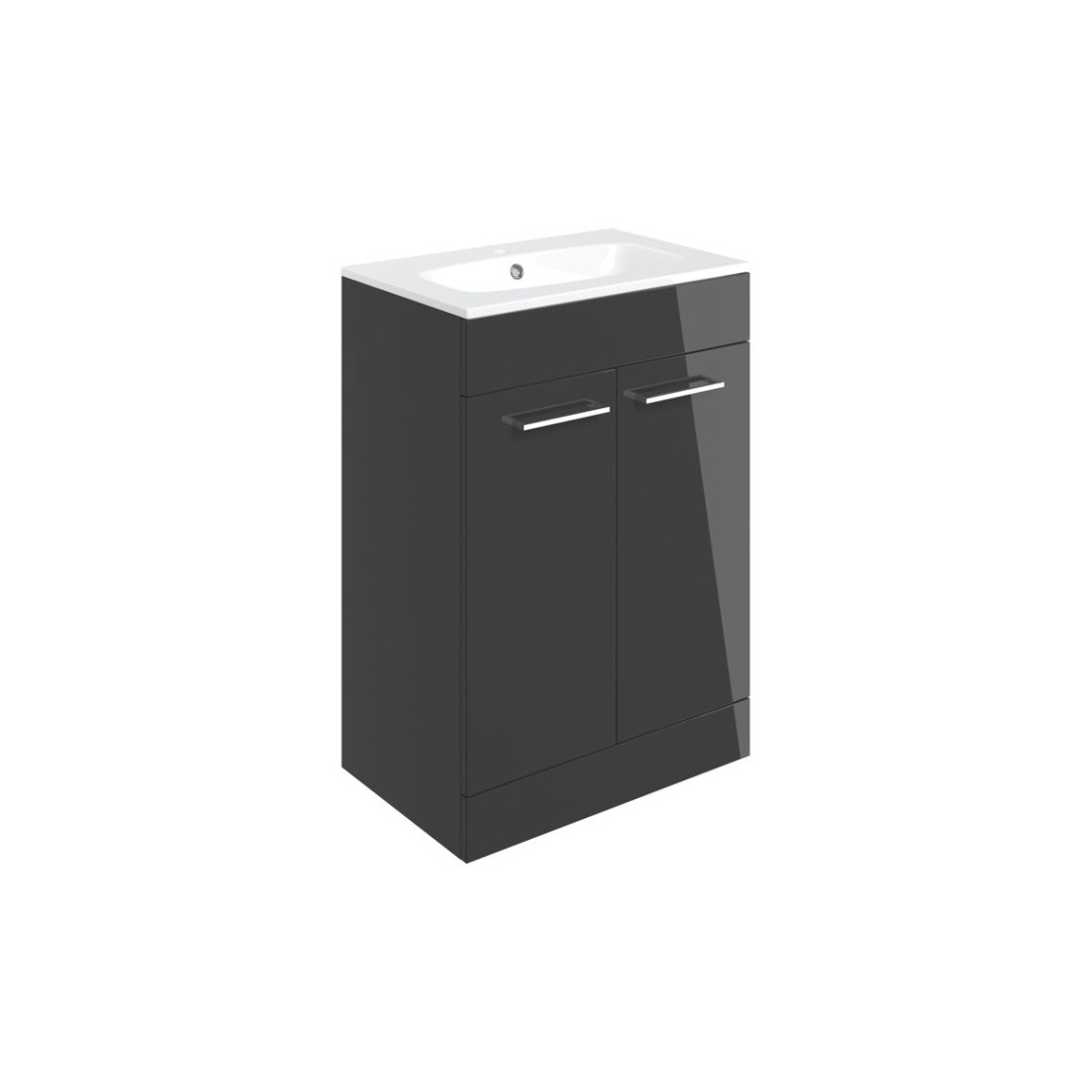 Valbom 610mm Floor Standing 2 Door Basin Unit & 1TH Thin Edge Basin - Anthracite Gloss