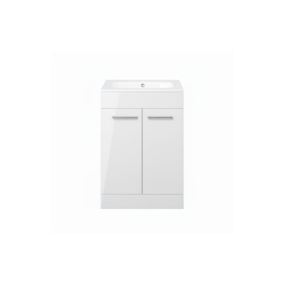 Valbom 610mm Floor Standing 2 Door Basin Unit & 1TH Thin Edge Basin - White Gloss measuring 610.0 x 460 x 848.0 mm.