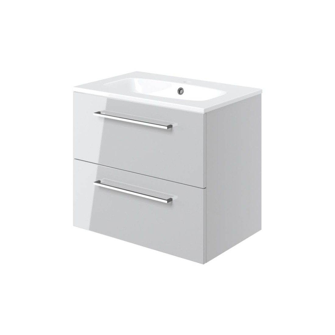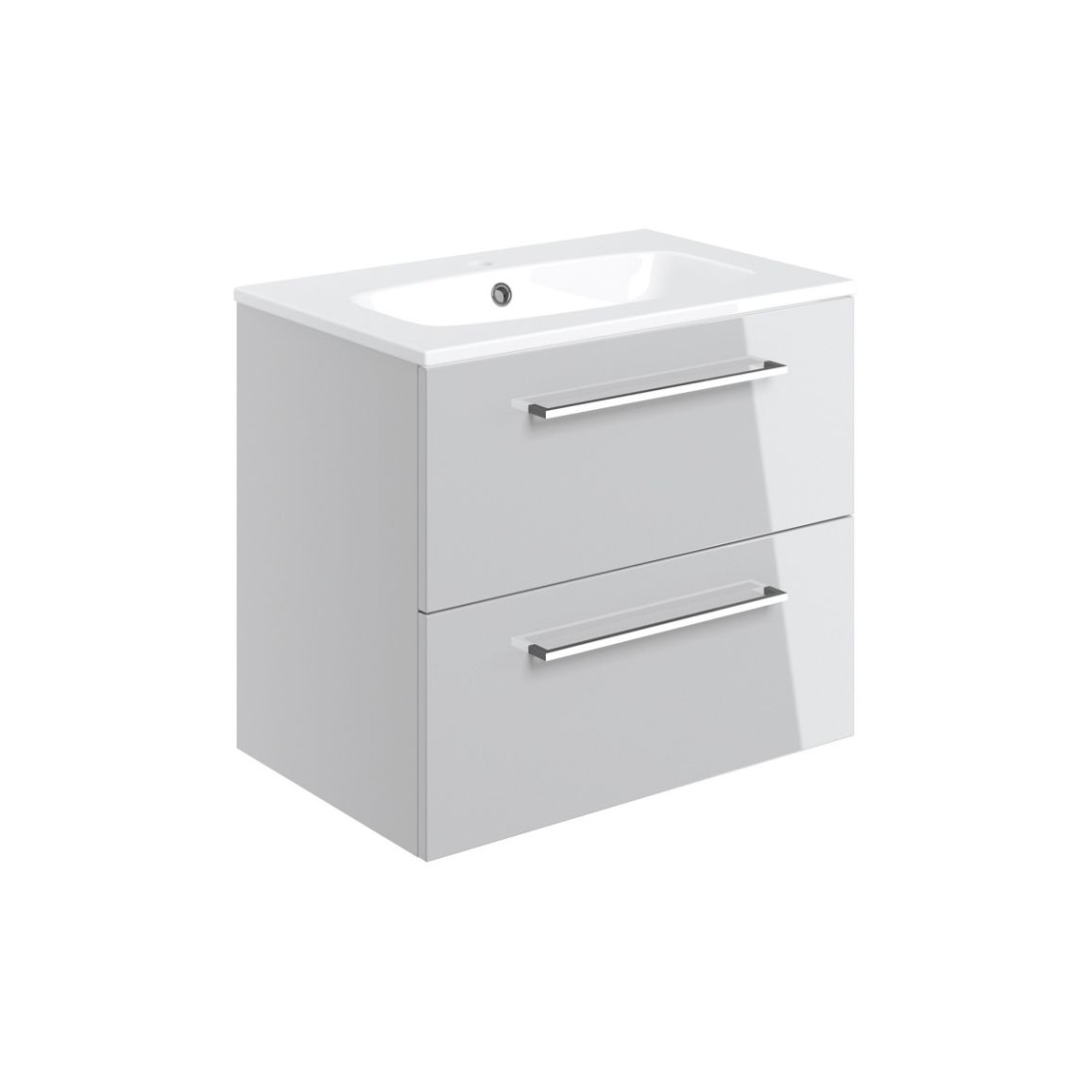 Valbom 610mm Wall Hung 2 Drawer Basin Unit & 1TH Thin Edge Basin - Grey Gloss
