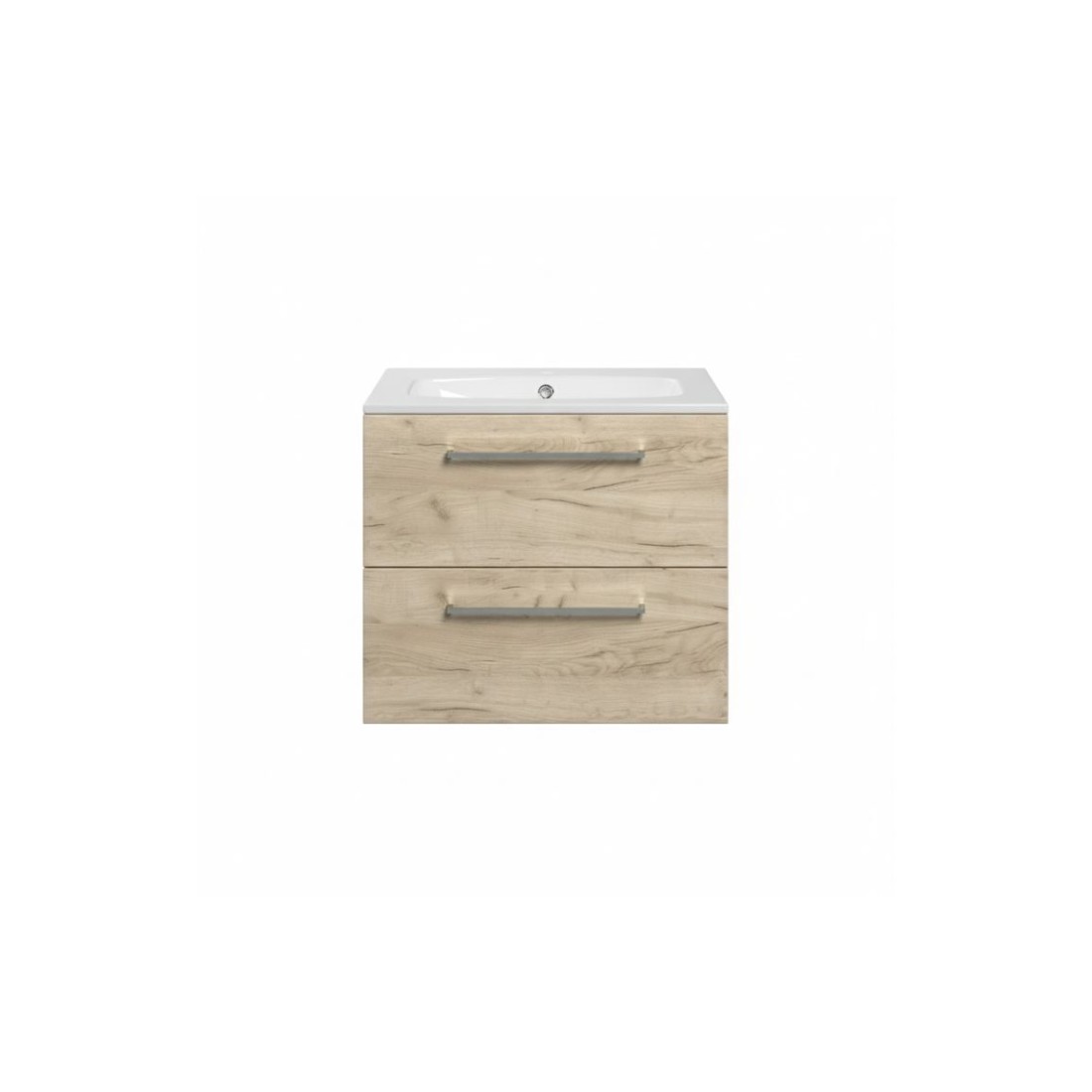 Valbom 610mm Wall Hung 2 Drawer Basin Unit & 1TH Thin Edge Basin - Oak measuring 610.0 x 460 x 518.0 mm.