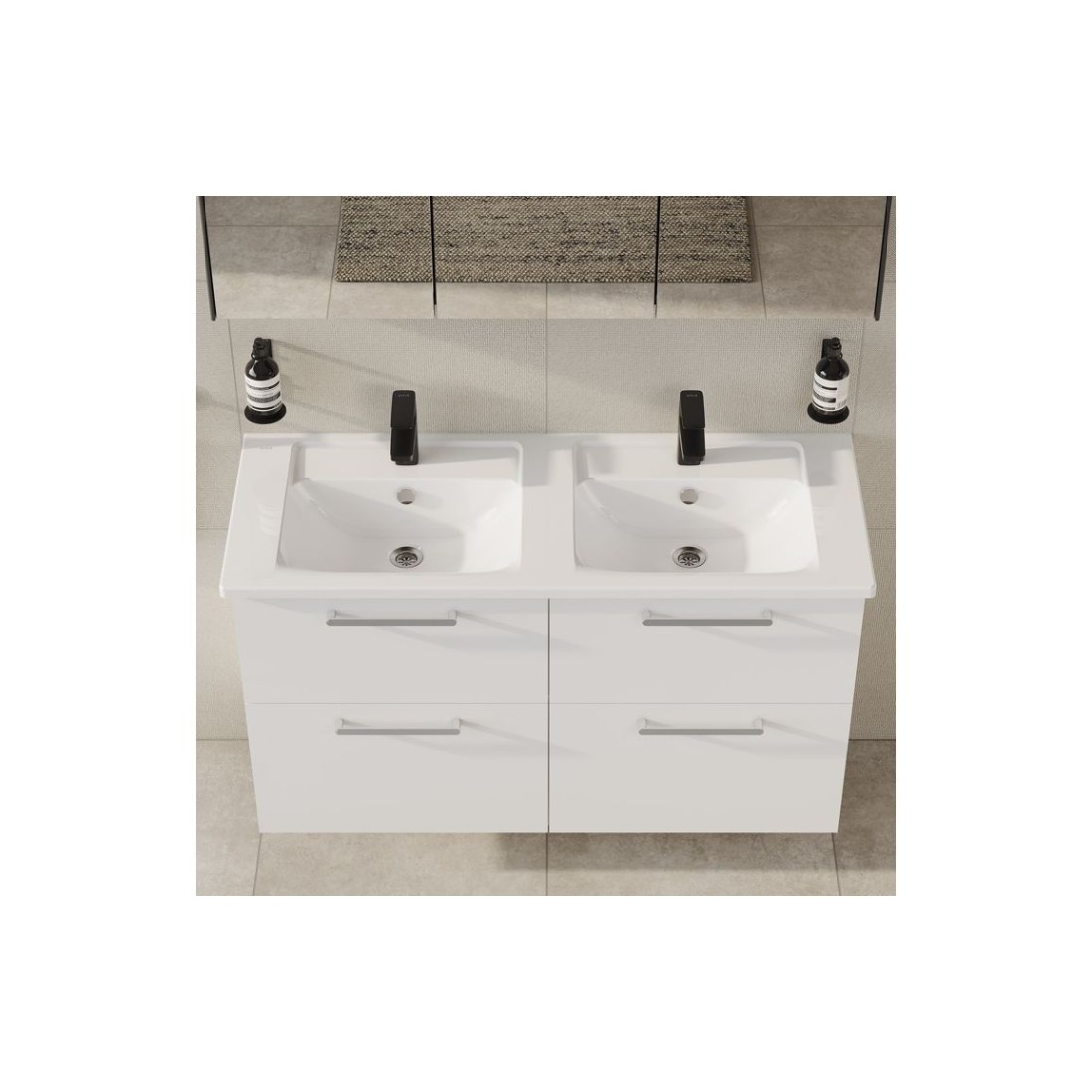 VitrA Root Flat 120cm 4 Drawer Washbasin Unit - High Gloss White measuring 1170.0 x 450 x 650.0 mm.