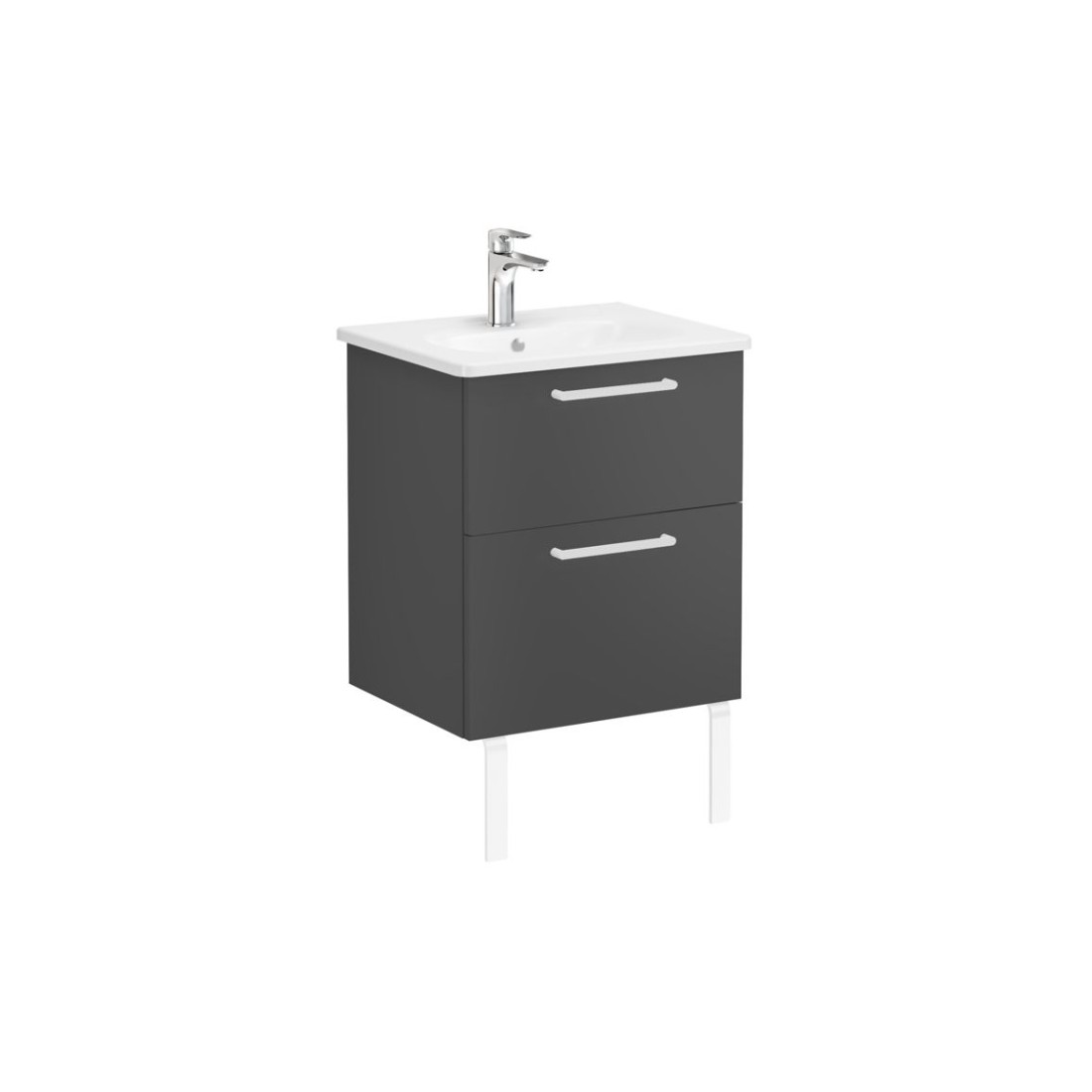 VitrA Zentrum 60cm 2 Drawer W/H Washbasin Unit - Matt Storm Grey