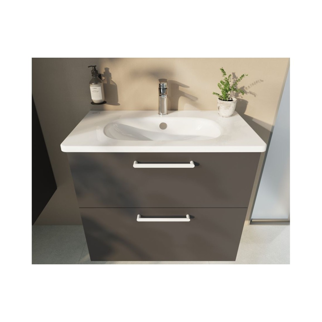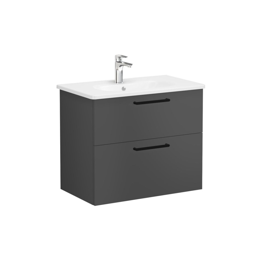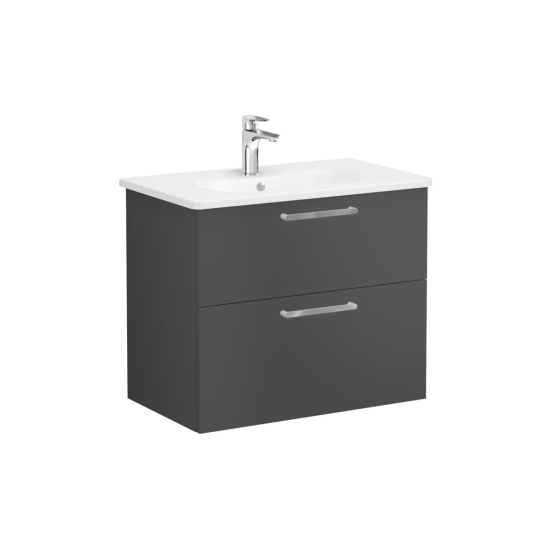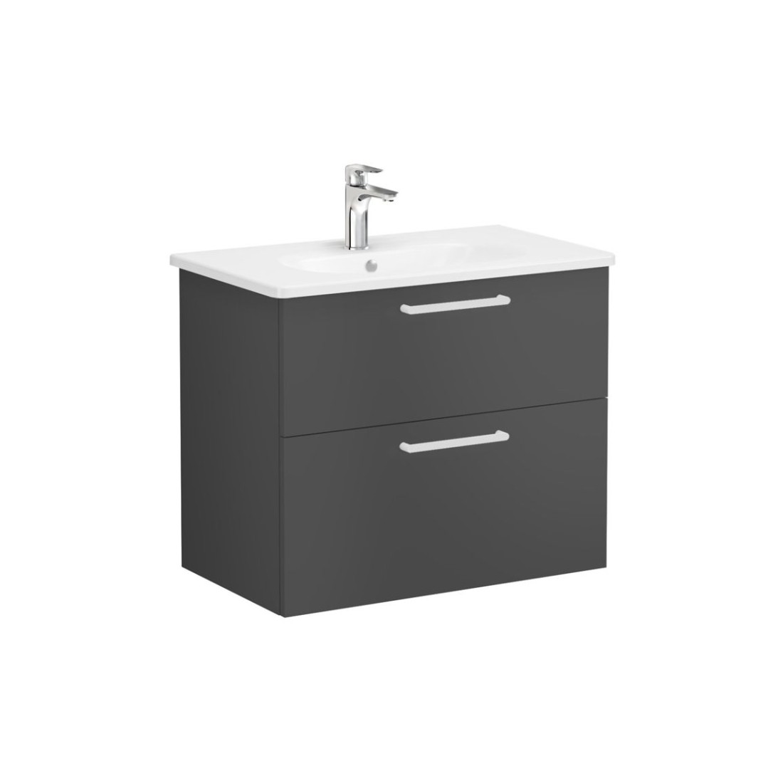 VitrA Zentrum 80cm 2 Drawer W/H Washbasin Unit - Matt Storm Grey