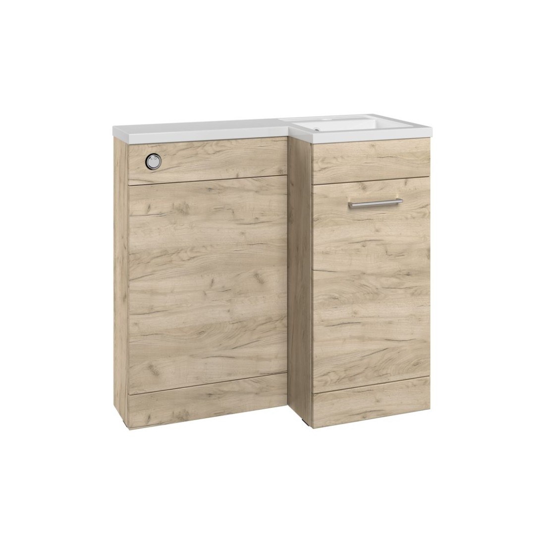 Vila Nova 900mm F/S L-Shape Pack & Basin (RH) - Oak measuring 900.0 x 390/210 x 860.0 mm.